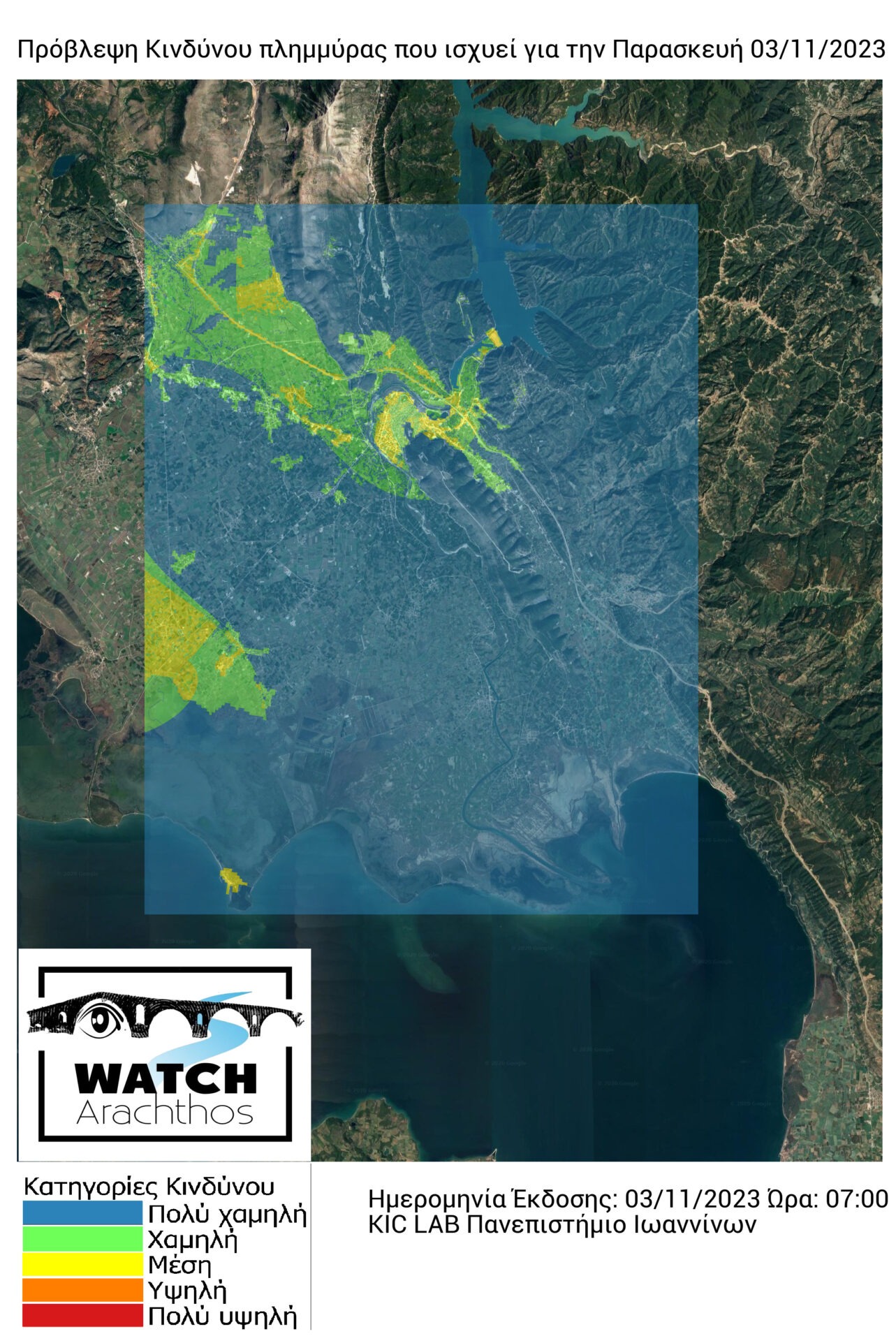 Πρόβλεψη Κινδύνου πλημμύρας που ισχυεί για την 3/11/2023